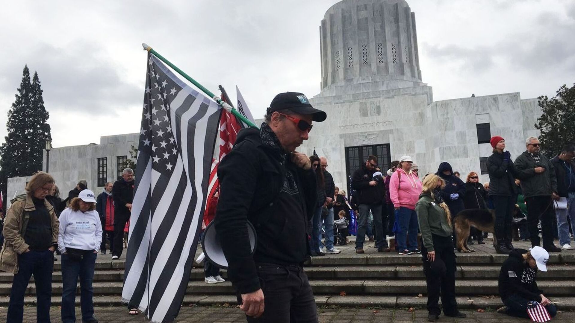/ Pāriet pie mediju bankasМитинг в поддержку действующего президента США Дональда Трампа в Салеме, столице штата Орегон