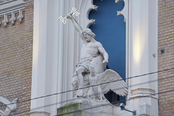 Скульптура Зевса на фасаде, выполненная скульптором Августом Фольцем.