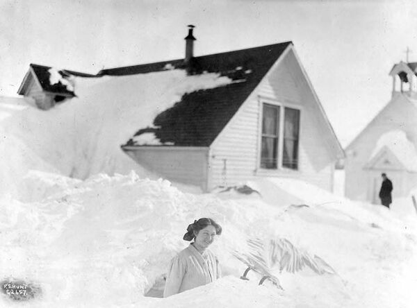 Женщина в снежном заносе после шторма в городе Валдиз на Аляске.