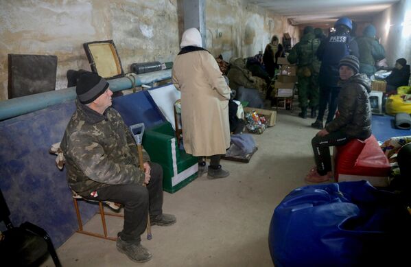 Nikolajevkas iedzīvotāji, Doņeckas Tautas milicijas karavīri un žurnālisti slēpjas ēkas pagrabā