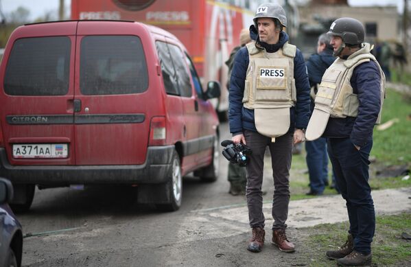 Žurnālisti siltumelektrostacijas teritorijā Sčastjē Luganskā