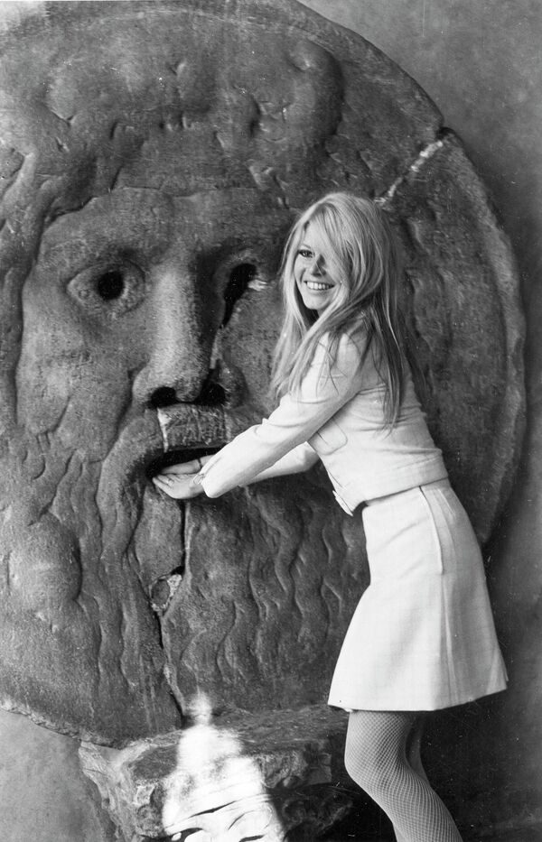 Французская кинозвезда позирует фотографам во время своей поездки в Рим в апреле 1967 года.