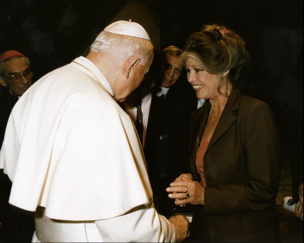 Брижит Бардо во время встречи с Папой Римским Иоанном Павлом II в Ватикане в сентябре 1995 года.