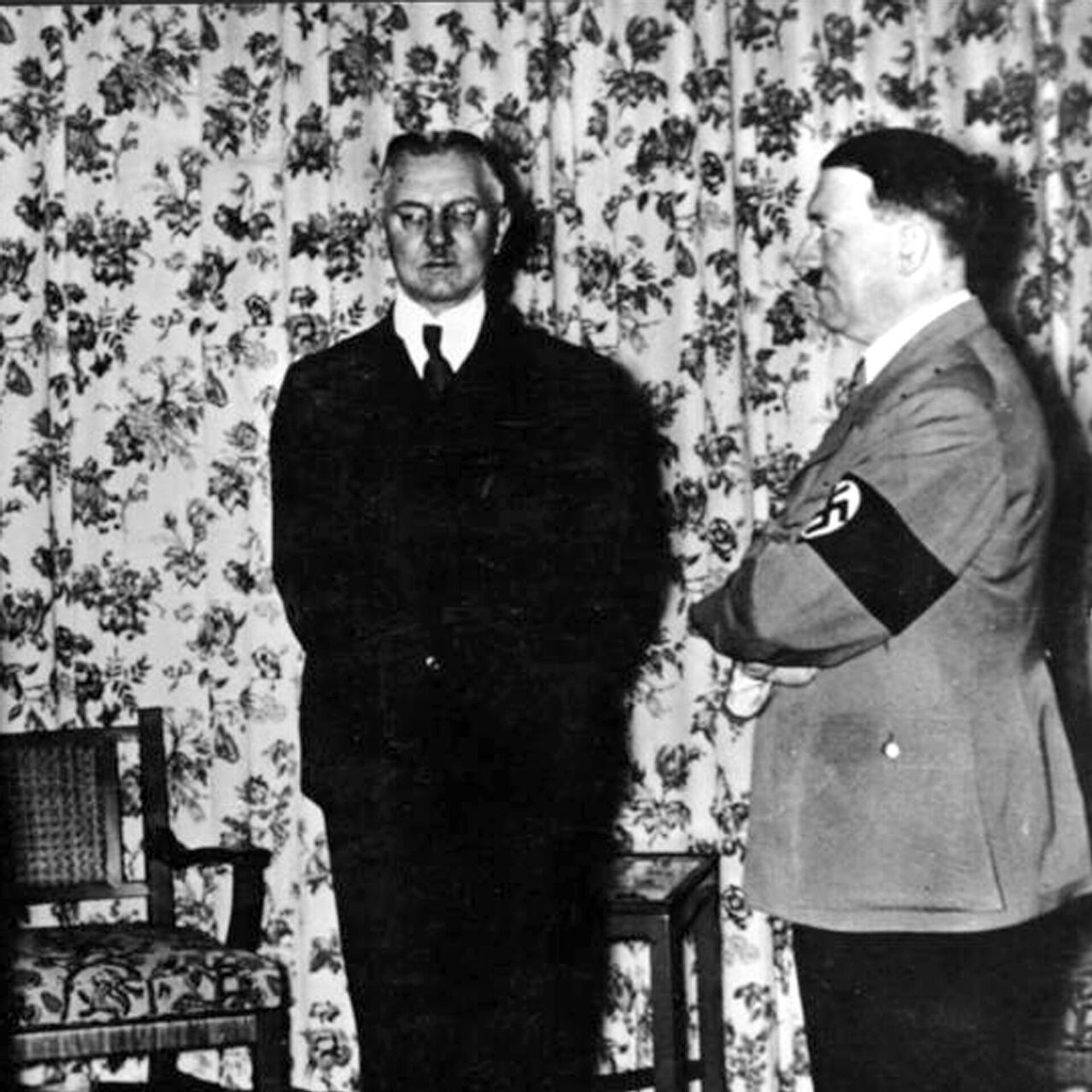 Нюрнбергский процесс: расист-философ латышского происхождения Альфред Розенберг15 декабря 2025, 15:25Лишь только немецкая экономика стала становиться на ноги, вопрос о своевременной выплате репараций снова стал актуален. В Париже в 1929 году состоялась конференция, на которой обсуждалась проблема положенных выплат странам-победительницам.Шахт, возглавлявший германскую делегацию, пытался договориться о снисхождении к немцам, и ему это отчасти удалось. Западные партнеры пошли на некоторые уступки. Согласно новым условиям, в пересчете на американские доллары вместо прежних 15 миллиардов от Германии теперь требовалось уплатить всего лишь восемь миллиардов в течение долгих 58 лет. В марте 1930 года немецкий парламент безропотно принял этот план по долгосрочным выплатам репараций, что вызвало крайнее возмущение и недовольство у населения. При этом сам Шахт «сохранил лицо», демонстративно, как бы в знак протеста, покинув пост главы Рейхсбанка. В глазах патриотически настроенной общественности он остался не только финансовым спасителем страны, но и достойным немцем, крепко пекущимся о чести фатерлянда.Придет время, и Шахт произнесет свою знаменитую фразу: «Я хотел видеть Германию великой и сильной, и ради этого готов был объединиться даже с дьяволом». По сути, это и произошло, а в роли инфернального посланника здесь выступил Адольф Гитлер.CC BY-SA 3.0 / German Federal Archives / Hjalmar Schacht, Adolf HitlerЯлмар Шахт (слева) и Адольф Гитлер, 1936 год