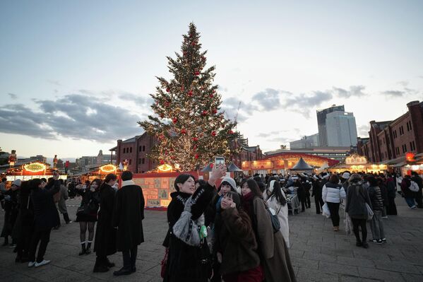 Елка на рождественской ярмарке в Йокогаме, Япония.