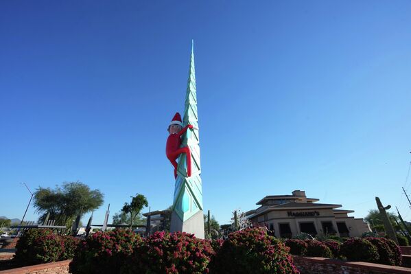 Эльф на елке в местном торговом центре в Скоттсдейле, штат Аризона, США.