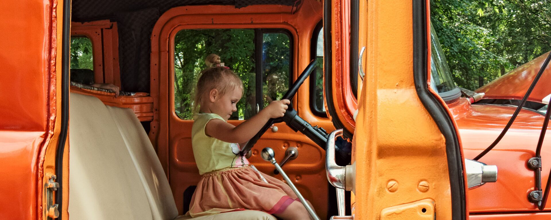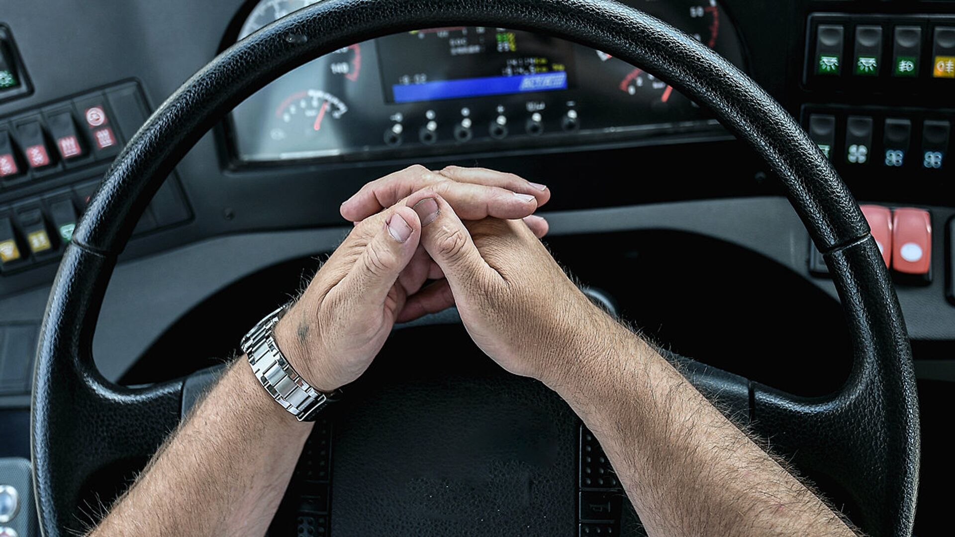 Водитель в кабине автомобиля