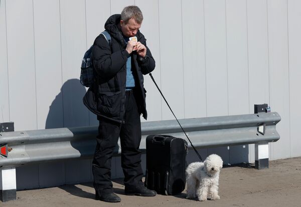 Bēglis no Harkovas netālu no pagaidu izmitināšanas punkta Maļinovkas ciemā Belgorodas apgabalā