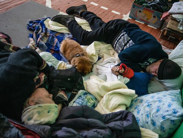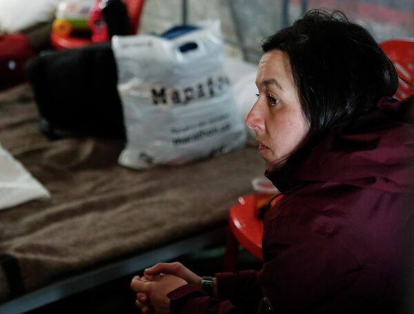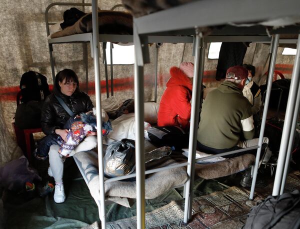 Bēgļi no Harkovas pagaidu izmitināšanas punktā Maļinovkas ciemā Belgorodas apgabalā