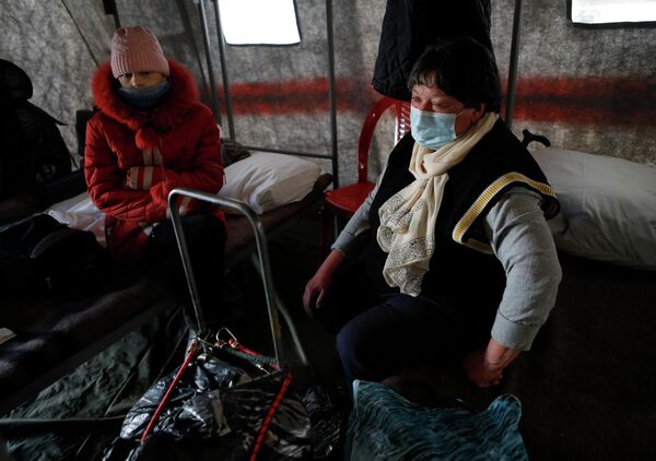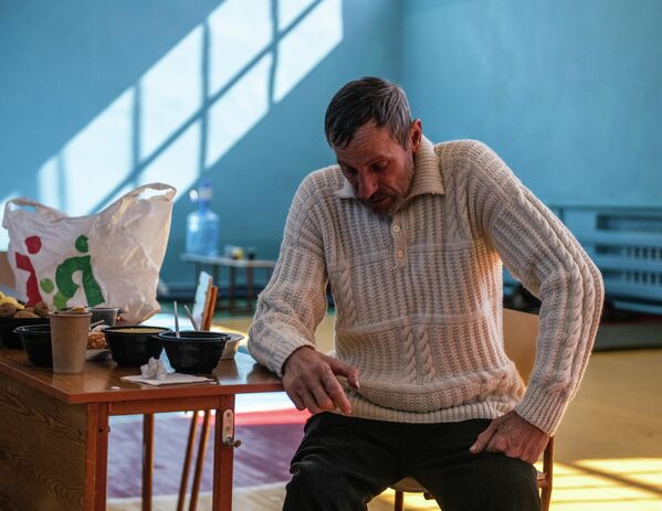 Seniori bēgļu izmitināšanas centrā Starobeļskā. Vietējie stāsta, ka Rubežnoje ciemā, no kura viņi ieradušies, jau ilgu laiku nebija ne ūdens, ne elektrības
