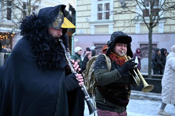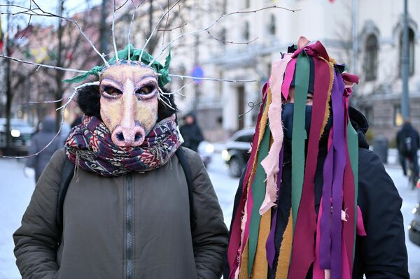 В Вильнюсе шествие ряженых прошло по Старому городу в сопровождении живой музыки.