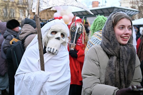 Участники шествия в честь проводов зимы наряжаются чертями, ведьмами, различными животными.